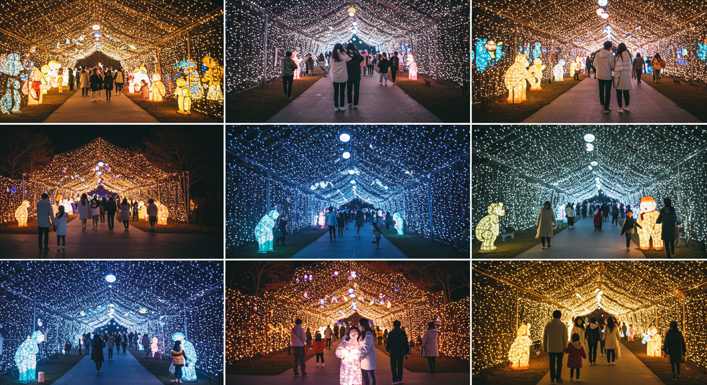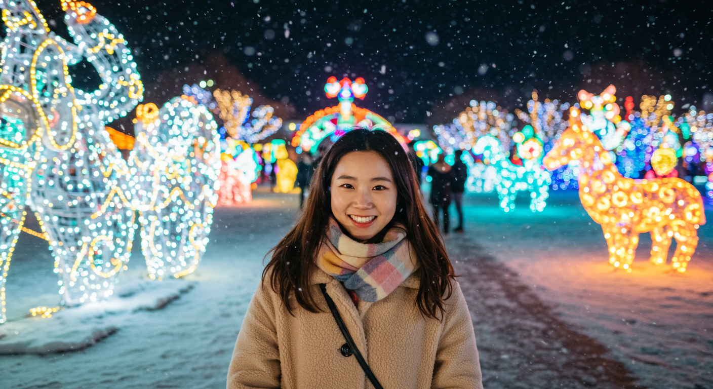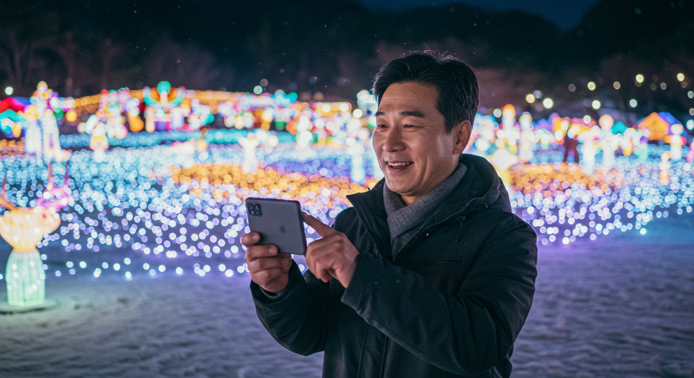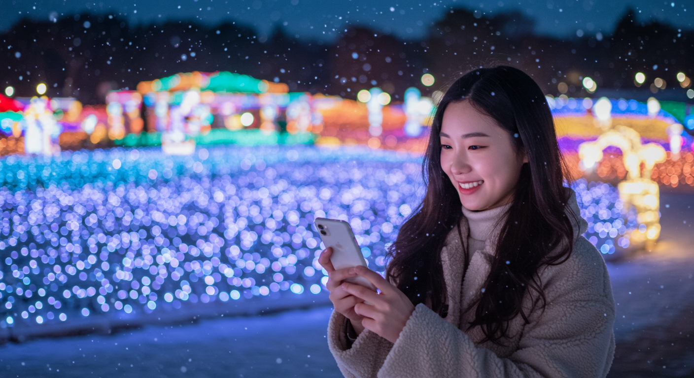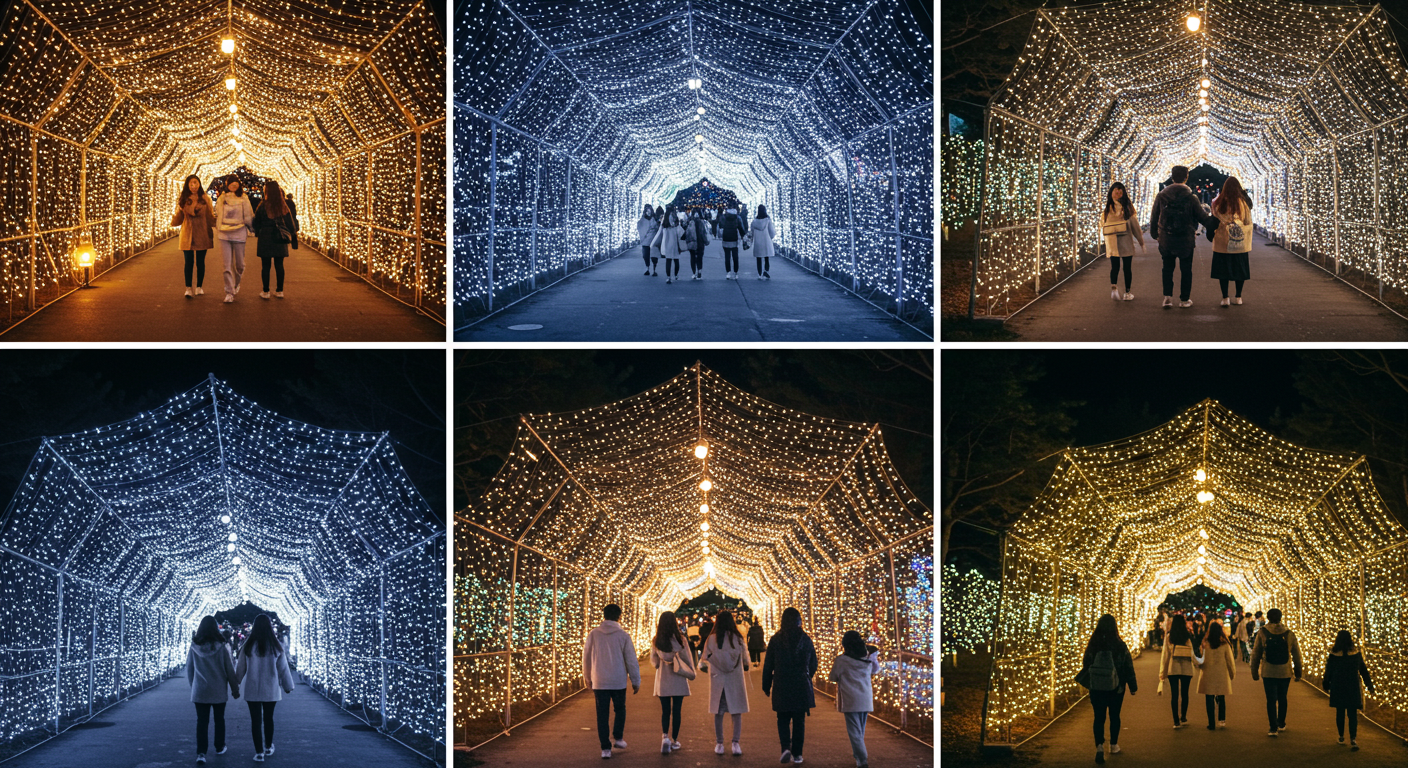 보너스 팁: 눈 내리는 퍼포먼스 직후에는 메인 광장이 혼잡해지니, 5분 먼저 빠져나와 ‘빛의 숲’으로 회피 후 역류 동선으로 돌아오면 대기 없이 주요 포토존을 소화할 수 있어요. 장노출은 ISO 100, 1/4~1/10s, 손떨림 보정 ON을 기본값으로 권합니다.